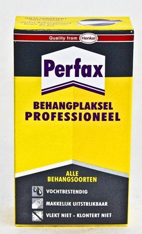 Perfax Behangplaksel Professioneel is een professionele behanglijm voor alle soorten behang. De lijm vlekt en klont niet en is vocht bestendig. Daarnaast is de lijm kalkbestendig en daardoor zelfs geschikt voor toepassing op nieuwe pleisterlagen.
