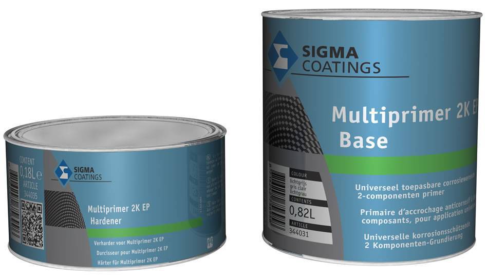 Sigma Multiprimer 2K EP is een oplosmiddelhoudende tweecomponenten primer voor staal, thermisch verzinkt staal en non-ferro metalen. Het heeft een uitstekende hecting en is corrosiewerend, ook op diverse kunststoffen. Ook is het mogelijk om de primer over te gronden of af te schilderen met alkydharsverven. Het rendement van dit product is ca 12 m2/L (afhankelijk van de ondergrond).